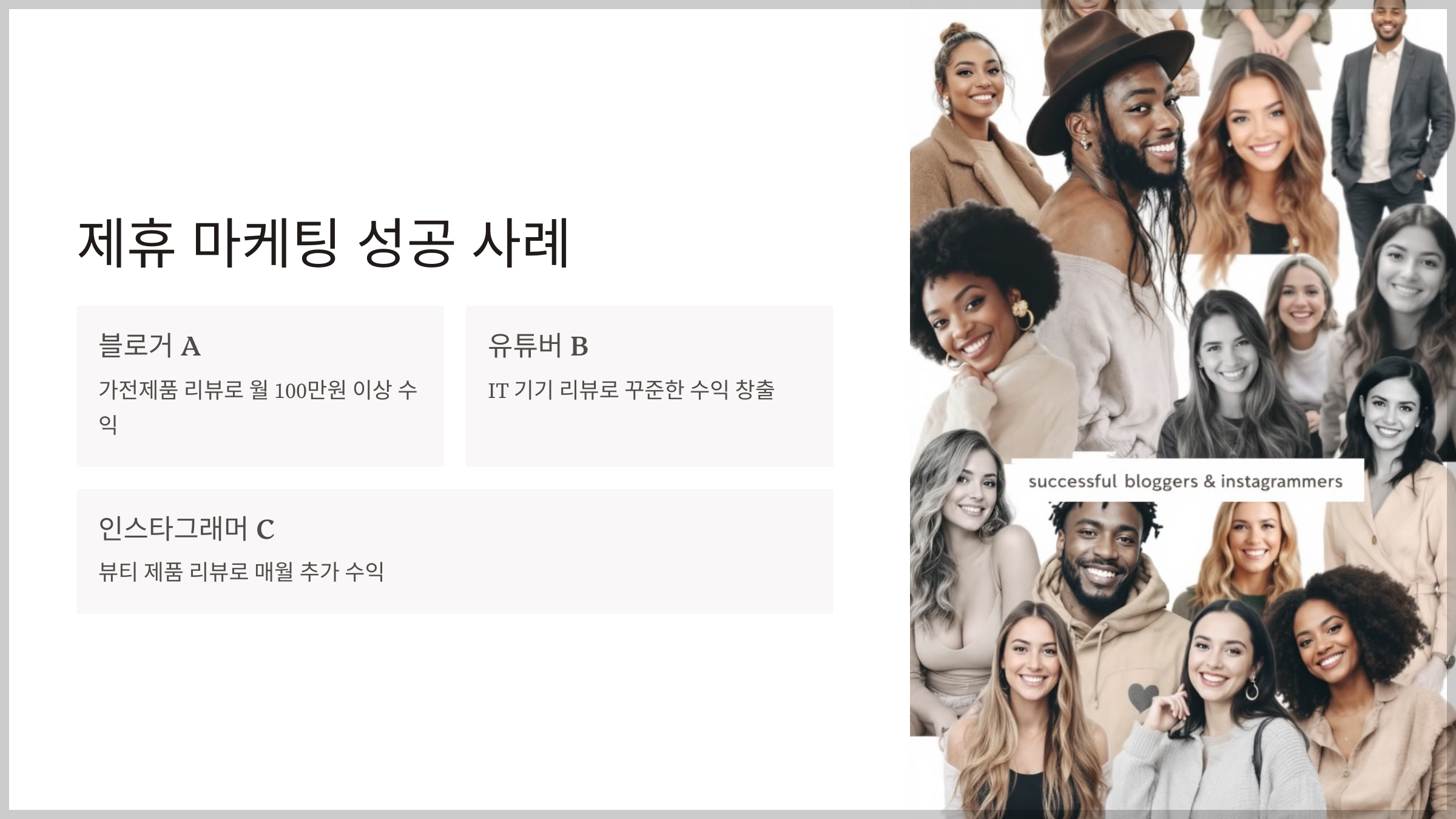 사례 3: 인스타그램 인플루언서 C는 뷰티 제품 리뷰와 함께 제휴 링크를 활용해 매월 추가 수익을 올리고 있습니다.